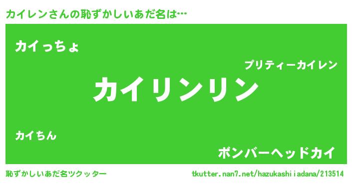 | 意味不明あだ名 | 『とにかく怪しいカイレン』 |