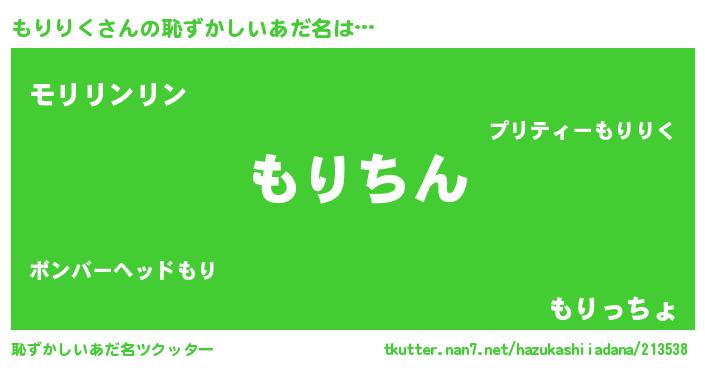 | 意味不明あだ名 | 『永久保存もりりく』『ペロリンもりりく』 |