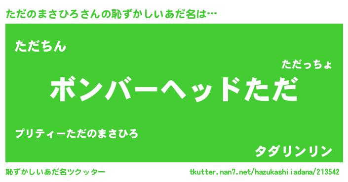 | ヘコむあだ名 | 『ただのまさひろ(笑)』『ただ太郎』 |