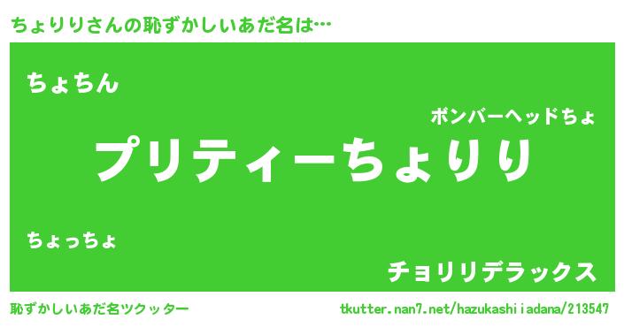 | ヘコむあだ名 | 『ちょにゅー』『ちょりり(爆)』 |