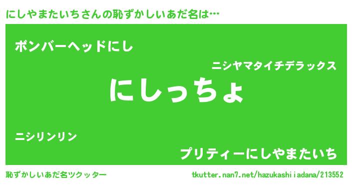 | 欧米人風あだ名 | 『にしやまたいちクリステル』 |