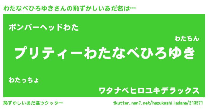 | ヘコむあだ名 | 『わたにゅー』『わたなべひろゆき(笑)』 |