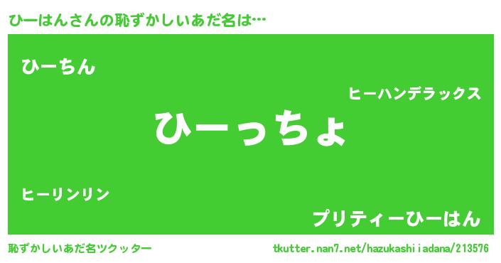 | 欧米人風あだ名 | 『ひーはんクリステル』 |