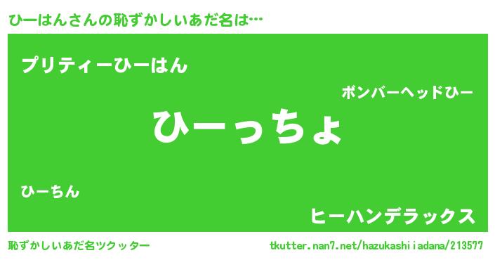 | 意味不明あだ名 | 『住所不定無職ひーはん(43歳)』 |