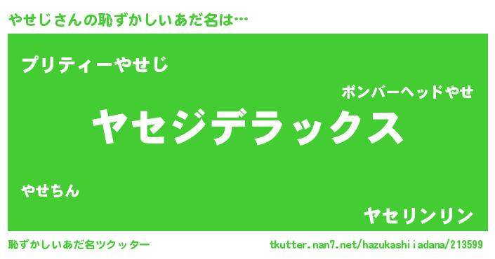 | ヒーロー風カッコイイあだ名 | 『超時空戦士ヤセジ』『スーパーヤセジ』 |