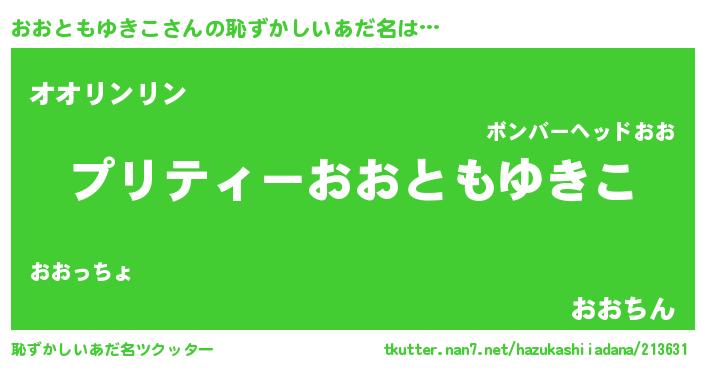 | 男性向けラノベタイトル風あだ名 | 『オオトモユキコアートオンライン』 |