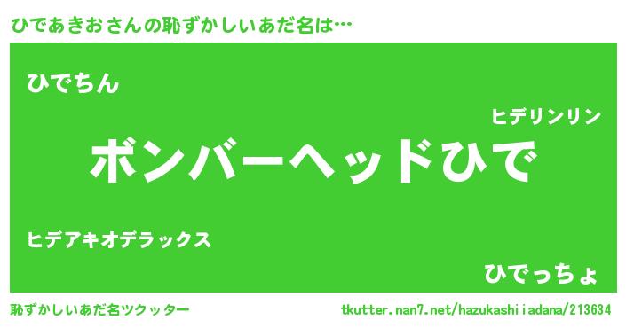 | 男性向けラノベタイトル風あだ名 | 『この素晴らしい世界にひであきおを!』 |