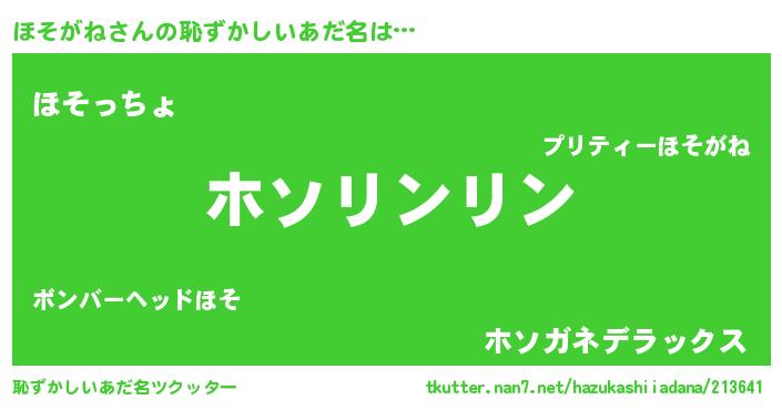 | ポケモン風あだ名 | 『ヒホソガネ』『ホーソイ』 |