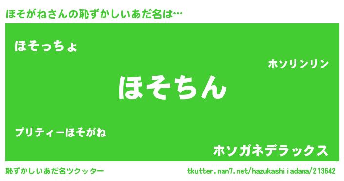 | ヘコむあだ名 | 『ほそがね(笑)』『レバニラ』 |