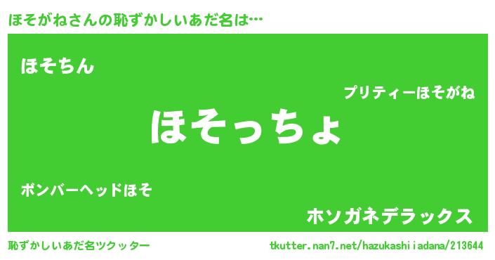 | ファンタジー風あだ名 | 『エターナルホソガネー』『ゼホソトゥ』 |