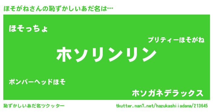 | 胡散臭い通販商品みたいなあだ名 | 『伝統あるサプリメント…その名も「ほそがね」』 |