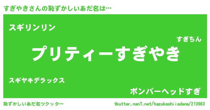 | 胡散臭い通販商品みたいなあだ名 | 『億万長者になれる霊験あらたかなお札…その名も「すぎやき」』 |