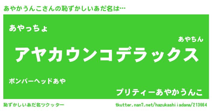 | ヒーロー風カッコイイあだ名 | 『究極戦士アヤカウンコ』『仮面アヤダー』 |