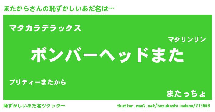 | ヒーロー風カッコイイあだ名 | 『仮面マタダー』『友情の使者またから』 |