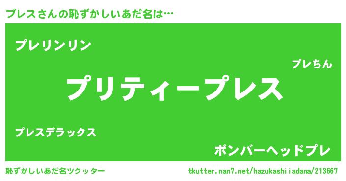 | 男性向けラノベタイトル風あだ名 | 『プレスの憂鬱』『緋弾のプレス』 |