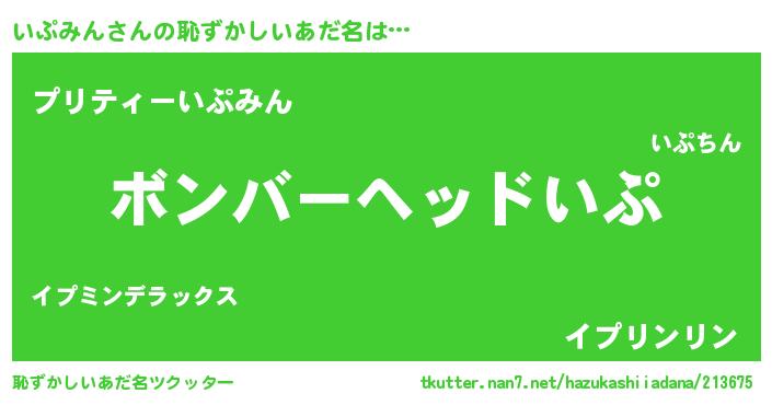 | 男性向けラノベタイトル風あだ名 | 『この素晴らしい世界にいぷみんを!』 |