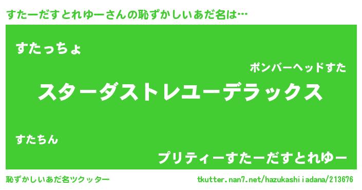 | 伝説のあだ名 | 『秘められし忍者すたーだすとれゆー』 |