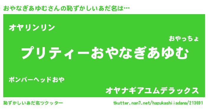 | 男性向けラノベタイトル風あだ名 | 『オヤナギアユムアートオンライン』 |