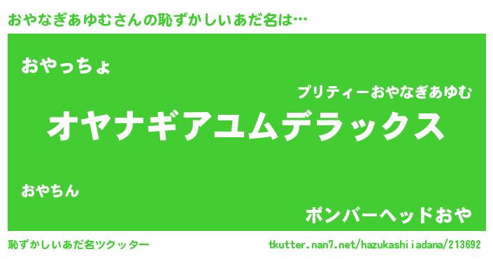 | 肩書あだ名 | 『おやなぎあゆむ閣下』 |