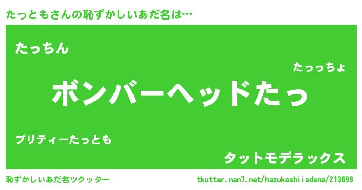 | ヘコむあだ名 | 『たっとも(笑)』『牛乳』『たっっ子』 |