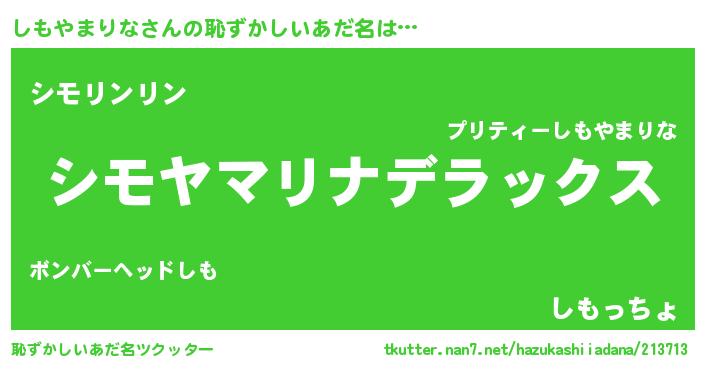 | 男性向けラノベタイトル風あだ名 | 『しもやまりなに滅ぼされるだけの簡単なお仕事です』 |