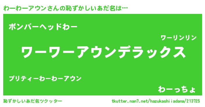 | 男性向けラノベタイトル風あだ名 | 『ワーワーアウンスレイヤー』 |