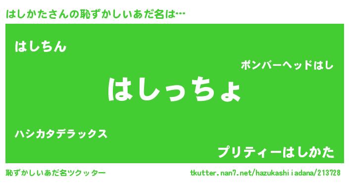 | 意味不明あだ名 | 『はしかたフォーエバー』 |