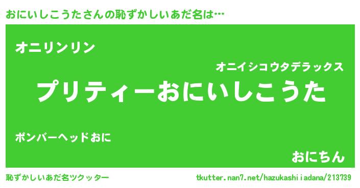 | 男性向けラノベタイトル風あだ名 | 『うちのおにいしこうたが世界を掌握している!』 |