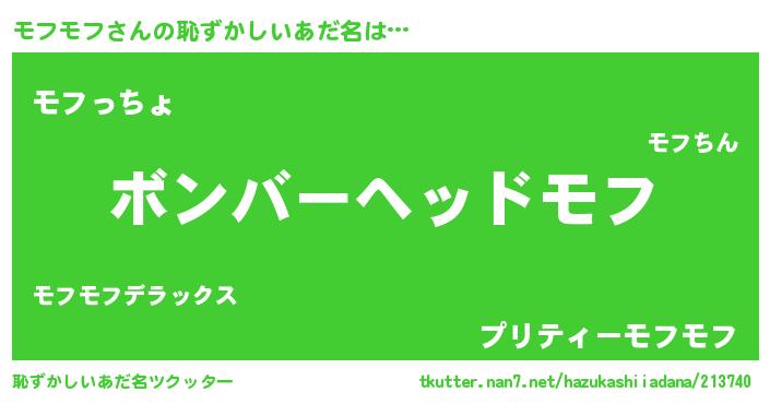 | ヒーロー風カッコイイあだ名 | 『正義の使者モフモフ』『ネオモフモフ』 |