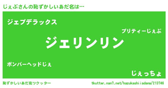 | 男性向けラノベタイトル風あだ名 | 『ダンジョンにじぇぶを求めるのは間違っているだろうか』 |