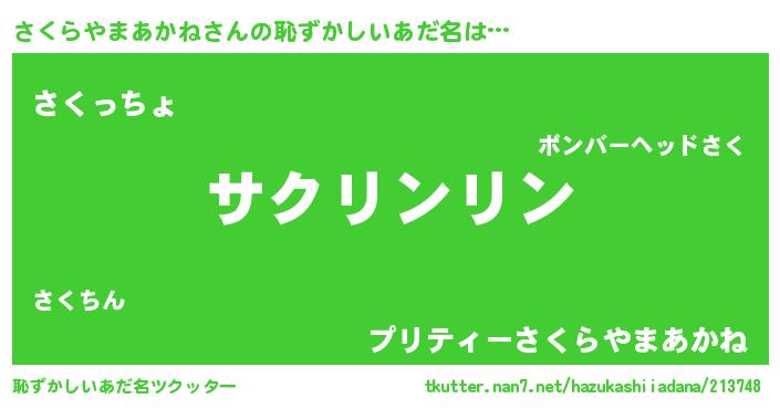 | 意味不明あだ名 | 『とにかく怪しいさくらやまあかね』 |