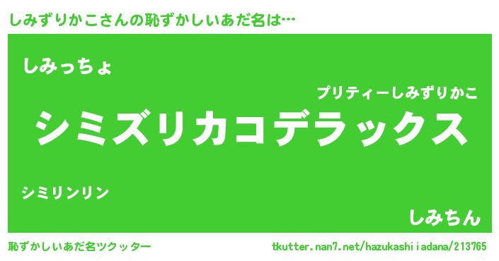 | 意味不明あだ名 | 『自称しみずりかこ』 |