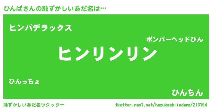 | 意味不明あだ名 | 『とにかく怪しいひんぱ』『自称ひんぱ』 |