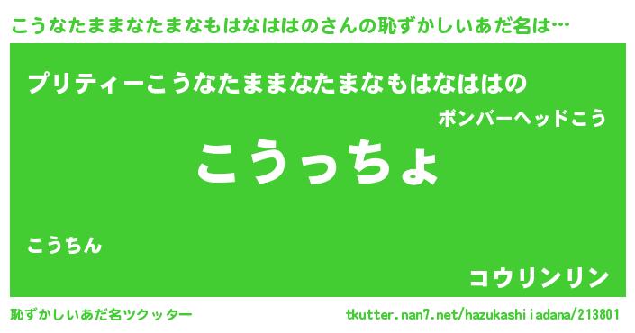 | 男性向けラノベタイトル風あだ名 | 『こうなたままなたまなもはなははの~年齢イコール彼女いない歴の魔法使い~』 |