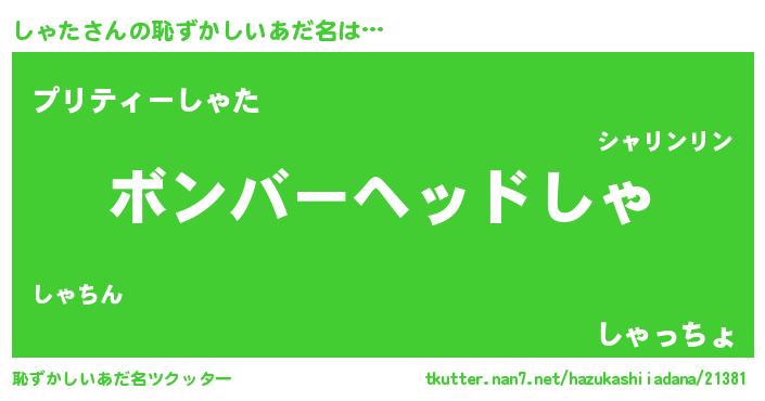 | ヒーロー風カッコイイあだ名 | 『愛の使者しゃた』『スーパーシャタ』 |