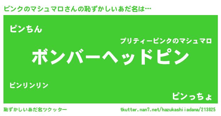 | 男性向けラノベタイトル風あだ名 | 『ピンクノマシュマロスレイヤー』 |