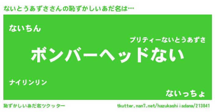 | ヘコむあだ名 | 『ないとうあずさ(小並感)』『酢こんぶ』 |