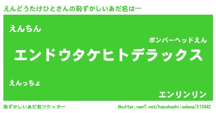 | ヘコむあだ名 | 『えんどうたけひと(遠い目)』『えんっ子』 |