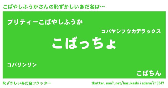 | 欧米人風あだ名 | 『こばやしふうかクリステル』 |