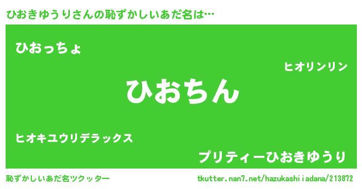 | 男性向けラノベタイトル風あだ名 | 『ひおきゆうり~年齢イコール彼女いない歴の魔法使い~』 |