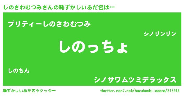 | 料理風あだ名 | 『しのさわむつみごはん』 |