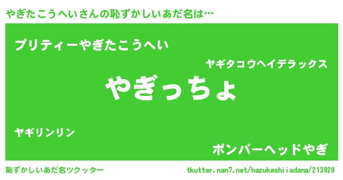 | 欧米人風あだ名 | 『ダレノガレやぎたこうへい』 |