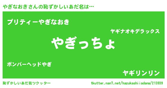 | 意味不明あだ名 | 『住所不定無職やぎなおき(98歳)』 |