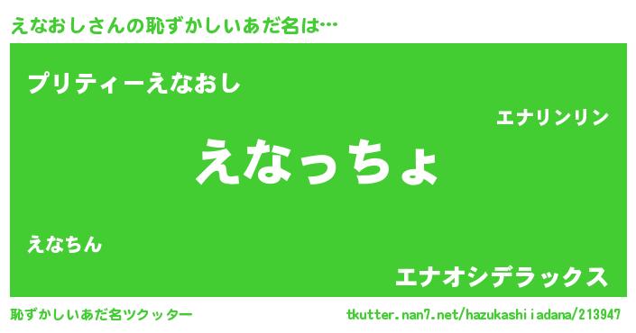 | ファンタジー風あだ名 | 『エターナルエナオシー』『エナフェル』 |