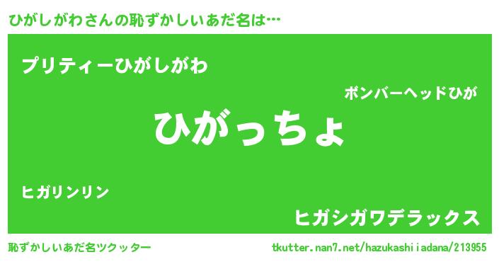 | 意味不明あだ名 | 『住所不定無職ひがしがわ(4歳)』 |