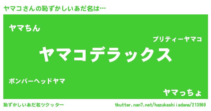 | 欧米人風あだ名 | 『トリンドルヤマコ』『ヤマコクリステル』 |