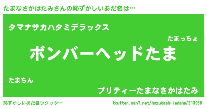 | 男性向けラノベタイトル風あだ名 | 『ノーゲーム・ノータマナサカハタミ』 |