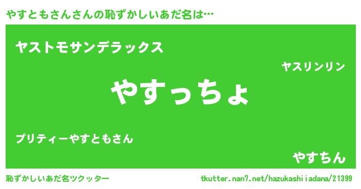 | 男性向けラノベタイトル風あだ名 | 『やはりやすともさんの青春ラブコメはまちがっている 』 |