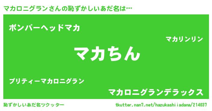 | 可愛いあだ名 | 『マカぷりん』『マカロニグランママ』 |