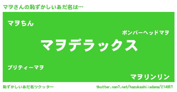 | ヒーロー風カッコイイあだ名 | 『仮面マヲダー』『超時空戦士マヲ』 |